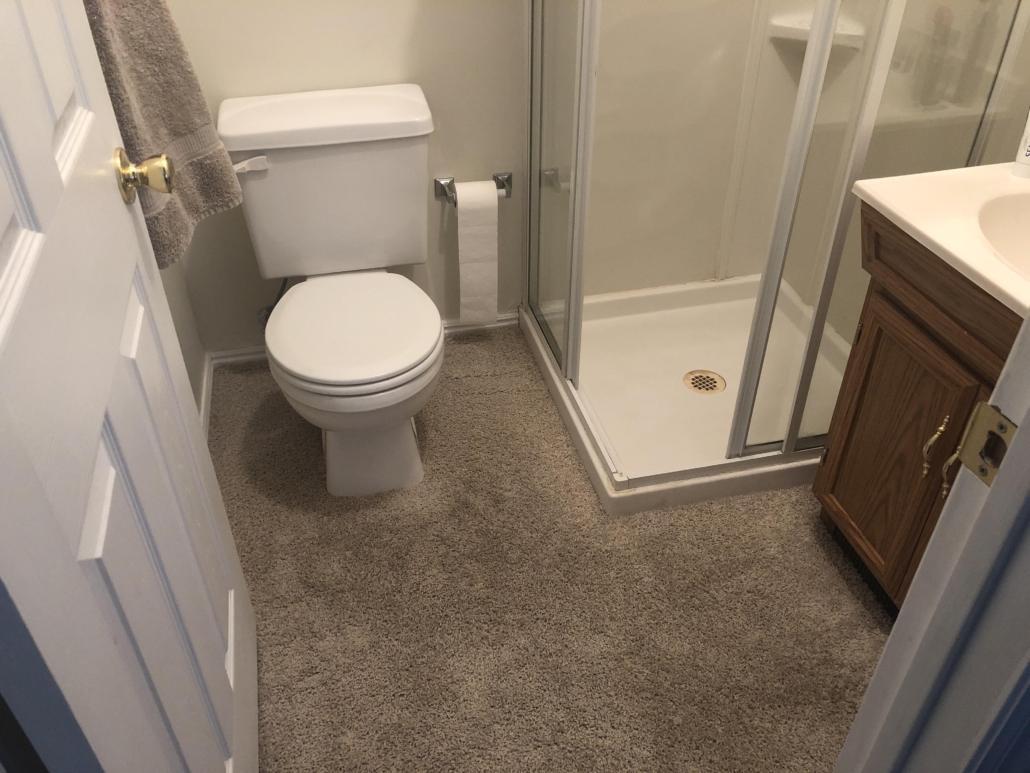 - Water sheds from shower/tub occupants as they step onto the carpet.